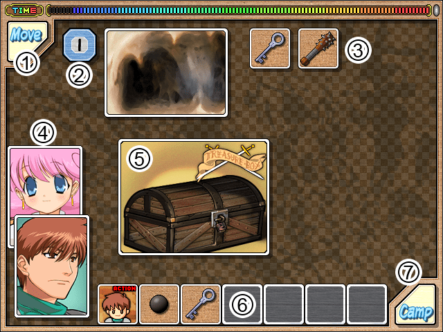 Time ticks by on this icon with each action on the adventure screen. After five actions, one of the units in the time bar will be used up.